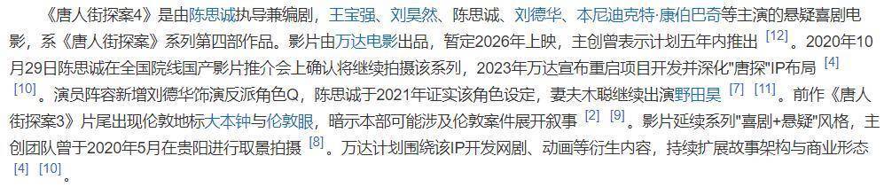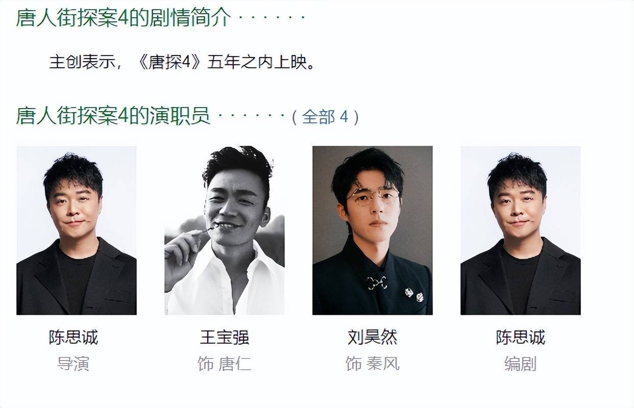 据了解,《唐东谈主街探案》系列的第四部电影《唐探4》,照旧是由陈想诚导演亲身执导,刘昊然和黄宝强领衔主演,曾出演了《唐探2》和《唐探3》的日本着名演员妻夫木聪也会转头,不息扮演野田昊一角。