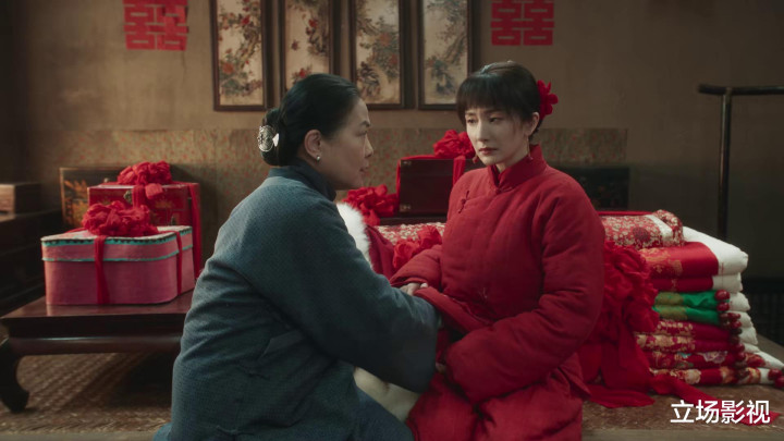宁家老宅东配房,宁绣绣正对着黄铜镜面危坐,她身上衣服石榴红的嫁衣。