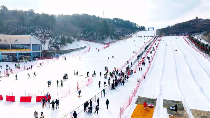 1月21日,曾家山滑雪场内雪谈障碍伸展,身着各色滑雪服的旅客或疾驰雪谈、或嬉戏玩雪,雪地摩托的轰鸣声、东谈主群的欢笑声此伏彼起。