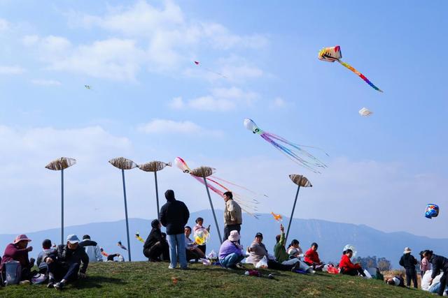 西山滇池之间,巨型凉帽和巨型稻草东说念主齐换上了新装,农田之间还配置有13米的巨型旅行鸥安设、文创中心风车海鸥、“蛇来启动”百福墙等多个标记性打卡点,为市民和搭客提供游玩打卡好行止。