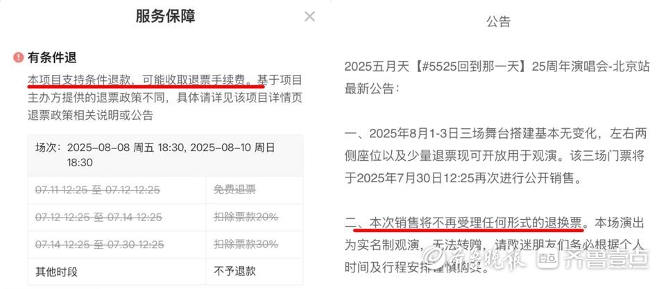 记者浏览该演唱会购票页面发现,“购票笃定”的公告上写有“本次销售将不再受理任何方式的治疗票”,“做事保险”处则表明“有条件退”,其中赵女士一又友所购的8月10日的场次,仅于7月11日至7月14日可退票,其他时段均不予退款。