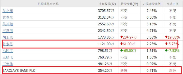 二季度,张素芬加仓61万股,共计捏有1121万股;而巴克莱新进354万股,分辩位列第六和第十大认知鼓励。