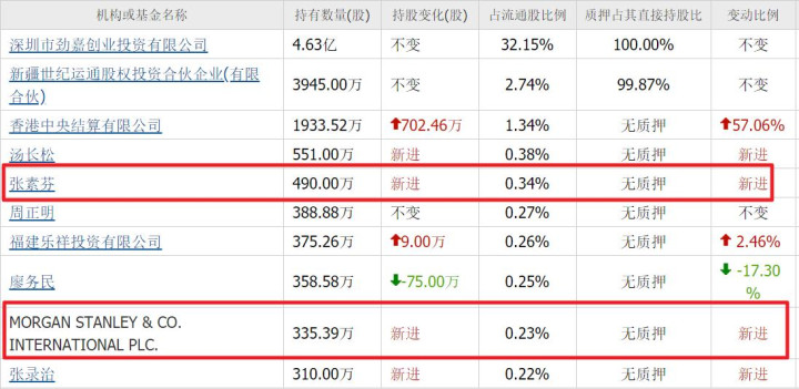 顺次6月底,张素芬新进490万股,位列第五大认知鼓励;而摩根斯坦利也便是大摩也新进了335万股。