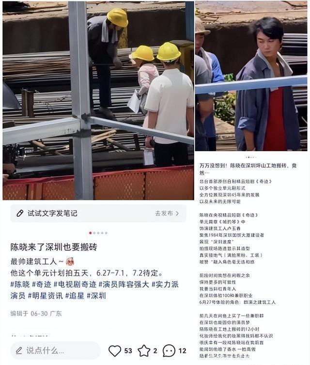 “万万没念念到!陈晓在深圳坪山工地搬砖……” “陈晓来了深圳齐要搬砖” 真·演员陈晓,真·工地搬砖 演绎的却是一个充满励志与立志精神的故事