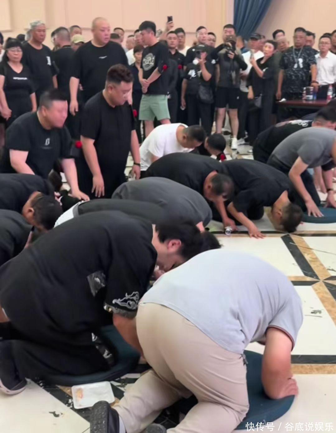 灵堂大厅内,许多东谈主轮替跪地叩拜,完成须生生出丧前的终末庆典。