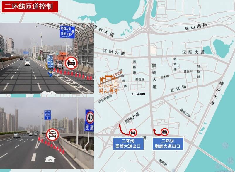 2月16日(除夜)22:00至17日(月朔)18:00、2月20日(初四)22:00至21日(初五)18:00,汉阳区归元寺路、西桥路、翠微路、归元寺北路、归元寺南路、肖家湾路阻截生动车及非生动车通行和停放。
