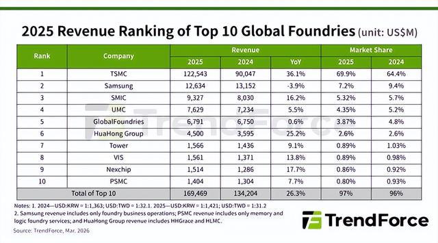 事实上,世界望望2025年度全球芯片代工订单企业的份额,排行,增长情况,就大致看出脉络来了。