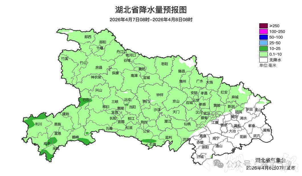 6日是清朗假期临了一天,上昼湖北的太空云量已显着加多,恩施、宜昌、荆州等地飘起小雨。11时,全省大部气温在17至23℃之间,体感依旧温煦惬心。白昼到夜间,西部及南部有小雨,鄂西南局地有中雨,其他地区以多云到阴天为主。7日降水界限扩大,大部地区有小雨,鄂西南局地仍有中雨,南部局地还可能伴有雷电。8日,湖北将迎来一次较显着降水经过。其中,江汉平原、鄂东北有大雨到暴雨,鄂西南有中到大雨、局地暴雨,其他地区有小到中雨、局地大雨。东部和南部部分地区还将伴有短时强降水、雷暴大风等强对流天气。