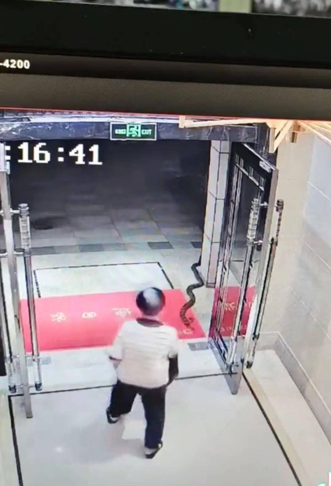 近日,广东惠州,视频显现,一条全身布满花纹的大蛇钻进小区,爬到住户楼门口探起了头,一位老东说念主刚要外出时看到,被吓到退了且归。