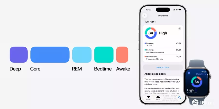 寝息得分变化Apple正在调整寝息跟踪的寝息得分算法。最高级第由“优秀”改为“尽头高”,各等第的阈值也随之调动。此举反应了用户反馈,合计底本的寝息得分区间过宽且“优秀”过于正面。